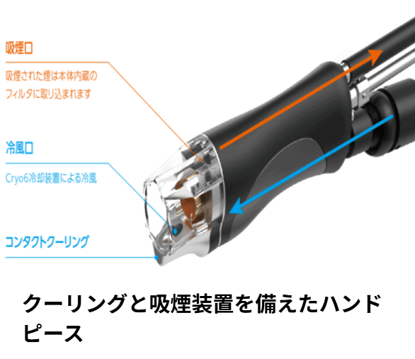 • コンタクトクーリング: 照射ヘッドが肌に触れる部分を冷却。